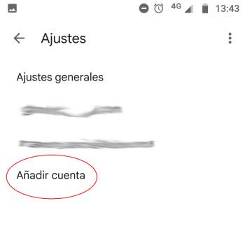 3. Se nos abrirá el menú con información de todas las carpetas de la cuenta actual (si ya tenemos alguna cuenta de Gmail configurada), pero nos desplazamos hacia abajo, buscando la opción